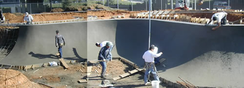 Construction continues on the skatepark. The Free flow bowl and pool are near completion, with the bank bowl and the street area next. It is all looking really good. Check out latest constuction pictures.