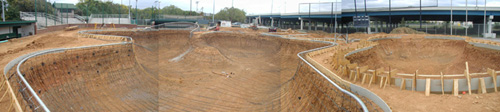 Construction is making excellent progress. The concrete pour has begun, and looks great so far. The Flow bowl is being shotcreted now. The pool will be next followed by the banked bowl and street areas. The park looks to be on schedule for opening in mid-late december, depending on weather. Check out latest constuction pictures.