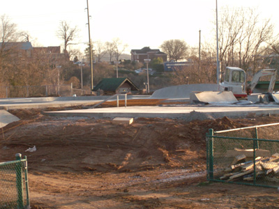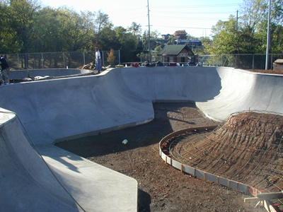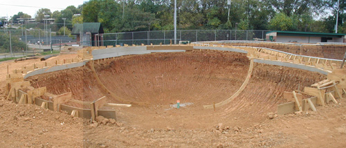 Construction continues on the skatepark. The park is really looking good and early reports say it will be one of the best in the southeast. The bowls are almost complete, and the concrete for the street area should be going in this week. Although the weather/rain may hold up the construction, the Skatepark Task Force will be meeting some time this week to resolve final construction issues and to hopefully set an opening date for the park. Check back here for the latest updates, and the latest news on when the park will be open for riding.