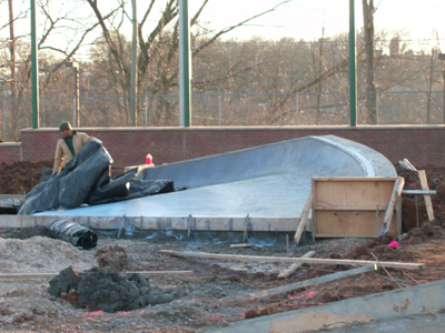 The construction has been moving along slow but steady, and the concrete for the park should be completed soon. Still no word yet on an opening date, but we are hoping within the next few weeks. There is also a tall security fence surrounding the skatepark, and the area is not open to the public. As soon as we receive an opening date from the Parks Dept. it will be posted on this website. Check back for the latest info as the construction comes down to the final phase.